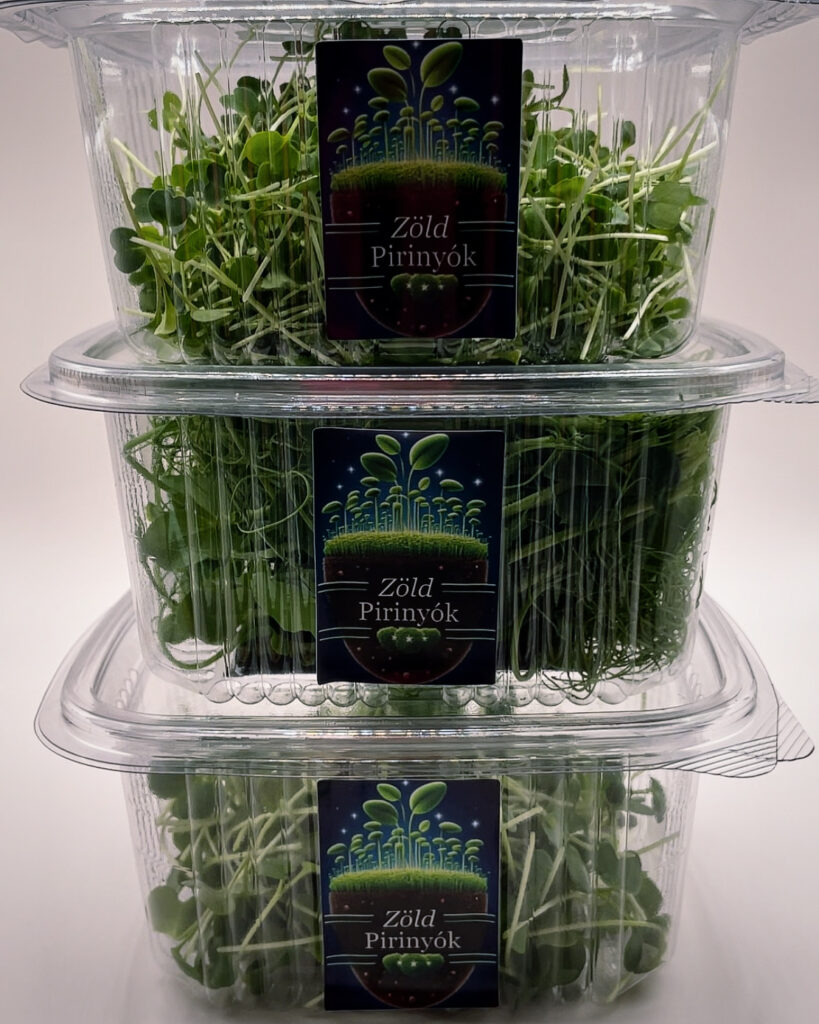Minden mikrozöldünkből elérhető kis és nagy adag is, valamint lehetőség van egyedi mix összeállítására is – így mindenki megtalálhatja a számára legideálisabb mennyiséget és ízkombinációt. A választható fajtákból általában 4-5 féle érhető el egyszerre, amelyeket időről időre frissítünk. Elérhető mikrozöldjeinkről érdeklődj az alábbi e-mail címen: info@zoldpirinyok.hu vagy telefonon: +36 70 743 5064